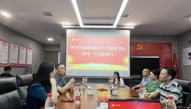 湖南鸿博启航教育科技有限公司总经理刘丁杰、湖南港中旅游集团总经理梁丹、湖南启星体艺文化发展有限责任公司副总经理李平、湖南中航国际旅行社有限公司副总经理付勇等学院校友热情接待yl8cc永利官网一行。