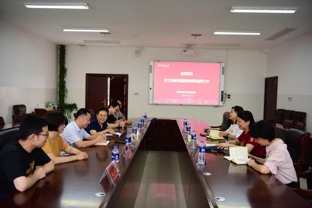 7月17日下午,校工会常务副主席余英、校工会副主席杨格花来yl8cc永利官网调研工会工作开展情况、倾听了解基层工会工作意见与困难。学院党委书记鲁良出席调研活动,调研座谈会由学院工会主席汤静主持。