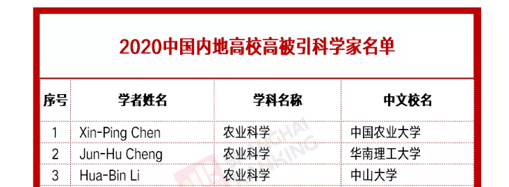 据悉,2020年科睿唯安“高被引科学家”共有全球60多个国家的6167位来自各领域的高被引科学家入榜,其中中国内地共计770人次(占比12.1%)入选,位居全球第二。入榜这份名单的自然科学家和社会科学家均发表了多篇高被引论文,其被引频次位于同学科前1%,高被引科学家数量或ESI高被引论文数量在国内外大学评估或学科评估中发挥着重要作用。在软科世界大学学术排名(ARWU)中,该项荣誉称号在“高端人才”指标类别的“国际知名学者”指标维度,按照上榜人次对其所归属学科,给予5倍权重进行计分,是衡量学校学术影响力的重要指标。