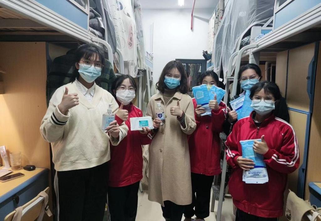 院党委副书记廖欢和全体辅导员深入学生课堂和寝室,贴心发放口罩、酒精消毒液等防疫物资,督促学生在公共场所和人员密集区加强个人防护,牢固树立“人人都是防线,人人都有责任”的意识。全体教师课前严格考勤,做好记录,督促学生戴好口罩,并保持适当间隔落座。