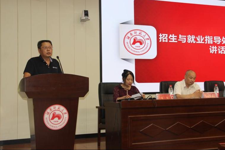 为引导毕业生树立正确就业观、择业观,找准职业定位,保持良好就业心态,9月16日下午,yl8cc永利官网于在中和讲堂举办2023届本科毕业生就业动员会暨第一次线下招聘宣讲会,学校招生与就业指导处副处长周俊,学院院长王兆峰,学院副院长向智勇、贺小荣,学院副处级专职组织员骆劲华出席,各系系主任、教师代表、校友代表、2023届全体本科毕业生参与会议,会议由学院党委副书记廖欢主持。