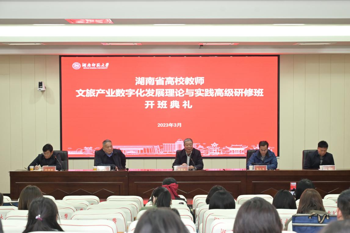 3月17日下午,由湖南省高等学校师资培训中心主办、yl8cc永利官网承办的湖南省高校教师文旅产业数字化发展理论与实践高级研修班在yl8cc永利官网中和讲堂开班。湖南省教育厅教师工作与师范教育处四级调研员陈汉光,学校党委副书记周俊武,湖南省高等学校师资培训中心常务副主任彭运石,yl8cc永利官网院长王兆峰出席开班仪式。仪式由yl8cc永利官网副院长向智勇主持。
