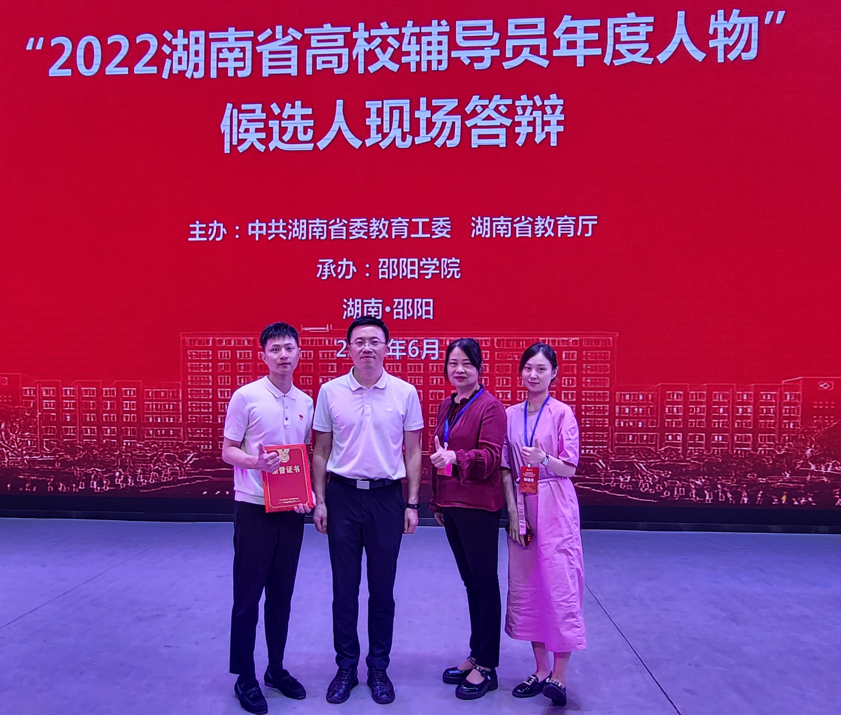 6月14日下午,由湖南省委教育工委、省教育厅举办的“2022湖南省高校辅导员年度人物”推选展示活动结果揭晓,yl8cc永利官网辅导员龚曦荣获“2022湖南省高校辅导员年度人物”。