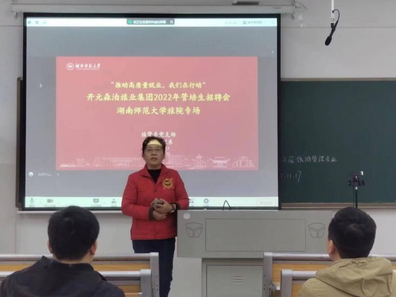 为落实学校和学院的稳就业、促就业工作要求,进一步推动yl8cc永利官网2023届本科毕业生高质量就业工作,11月17日中午,旅游管理系及旅游管理系党支部于学院220教室组织了“推动高质量就业,我们在行动”开元森泊旅业集团2022年管培生线上招聘推介会,特邀实习合作单位开元森泊旅业集团开展管培生招聘会。旅游管理系主任罗文斌出席,2019级班导师王钊老师以及2023届部分毕业生参加会议,会议由旅游管理系副主任汤静主持。