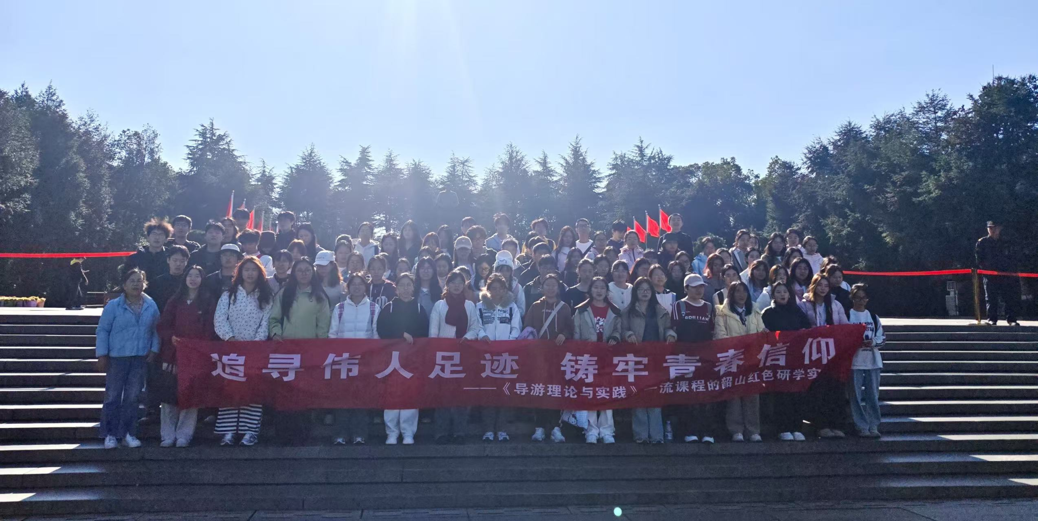 11月21日下午,yl8cc永利官网组织2024级旅游管理专业学生赴韶山景区开展《追寻伟人足迹 筑牢青春信仰》主题红色研学实践教学活动,该活动是yl8cc永利官网的国家级一流课程《导游理论与实践》理论与实践相结合的重要体现。