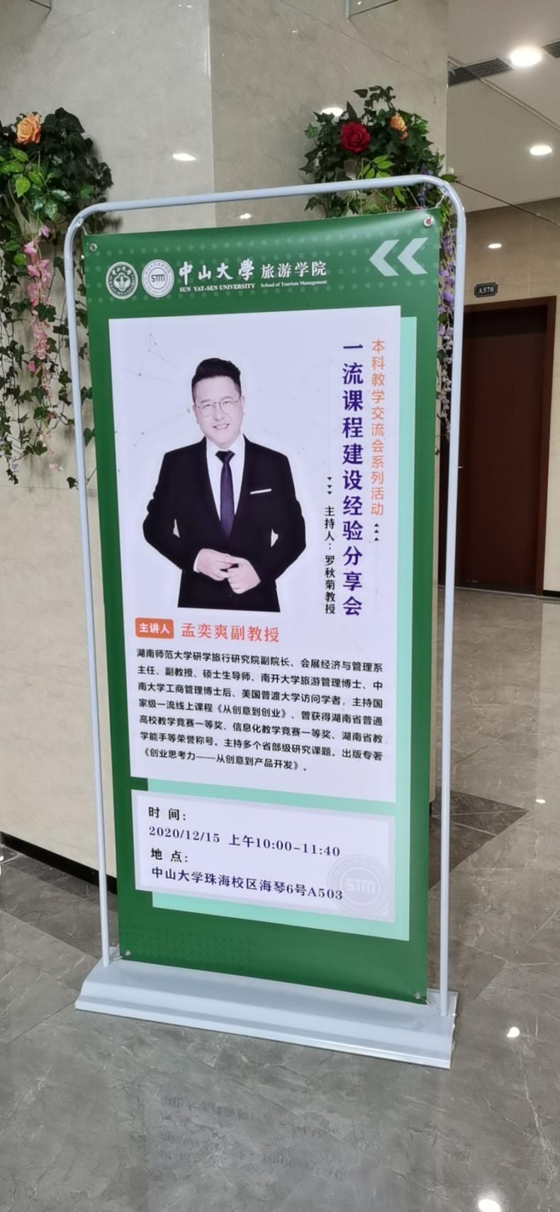 (通讯员吴少峰)12月15日,会展经济与管理系主任孟奕爽、副主任朱张祥、会展研究中心主任蔡卫民、青年教师吴少峰一行赴珠海和中山大学旅游学院教师们进行了国家一流课程建设和专业发展的交流。中山大学旅游学院副院长罗秋菊教授,旅游管理与规划系左冰教授,会展经济与管理系主任梁增贤副教授、酒店管理系杨云副教授、以及博士后和访问学者等教学科研人员出席了交流会。