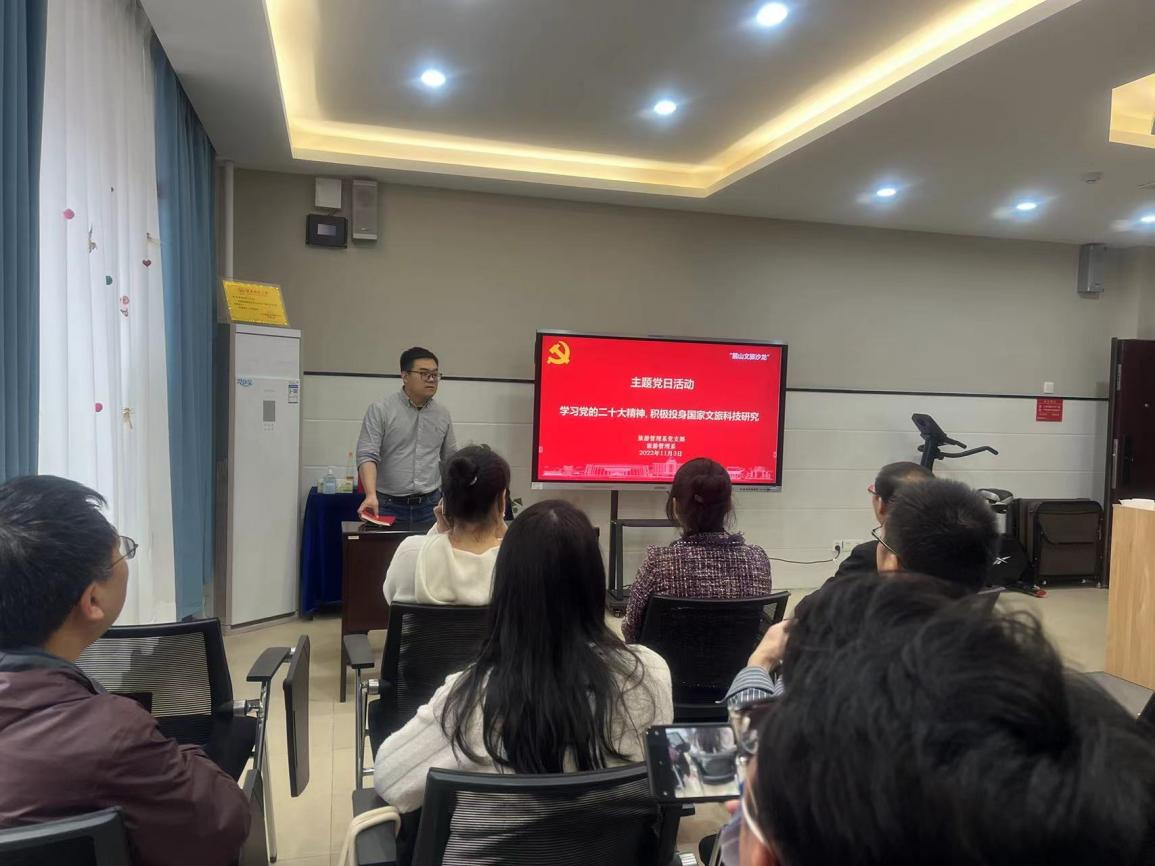首先,学院副院长、旅游管理系支部书记郑群明教授以“学习党的二十大精神, 扎根文旅融合研究”为题,从“如何把握党的二十大精神内核”、“深刻领会习近平总书记对文旅发展的重要论述 ”、“扎根文旅融合发展研究服务国家重大战略”三个方面分享了学习党的二十大精神的心得体会,指出当下文化和旅游深度融合研究中存在的困境、盲点、重点、热点,希望师生们能潜心于文旅融合研究,服务国家和地方文旅发展。