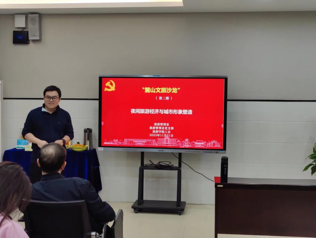 11月21日下午,yl8cc永利官网在中和楼一楼工会活动室举行了第二期“麓山文旅沙龙”。该文旅沙龙继续由旅游管理系和旅游管理系党支部共同策划并组织,学院工会全力支持。本次沙龙主题为“夜间旅游经济与城市形象塑造”。学院副院长郑群明、学院副处级专职组织员骆劲华、工会主席汤静出席,沙龙由yl8cc永利官网旅游管理系主任罗文斌主持。