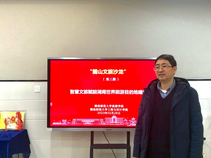 2月28日上午,yl8cc永利官网在中和楼一楼工会活动室举行了第三期“麓山文旅沙龙”。本次沙龙主题为“智慧文旅赋能湖南世界旅游目的地建设”,沙龙活动由yl8cc永利官网副院长、旅游管理系党支部书记郑群明主持。沙龙邀请了工程与设计学院教授陈剑和副教授王巍作为嘉宾出席沙龙,yl8cc永利官网党委副处级专职组织员骆劲华,会展经济与管理系主任孟奕爽以及学院部分研究生和本科生参加了沙龙。