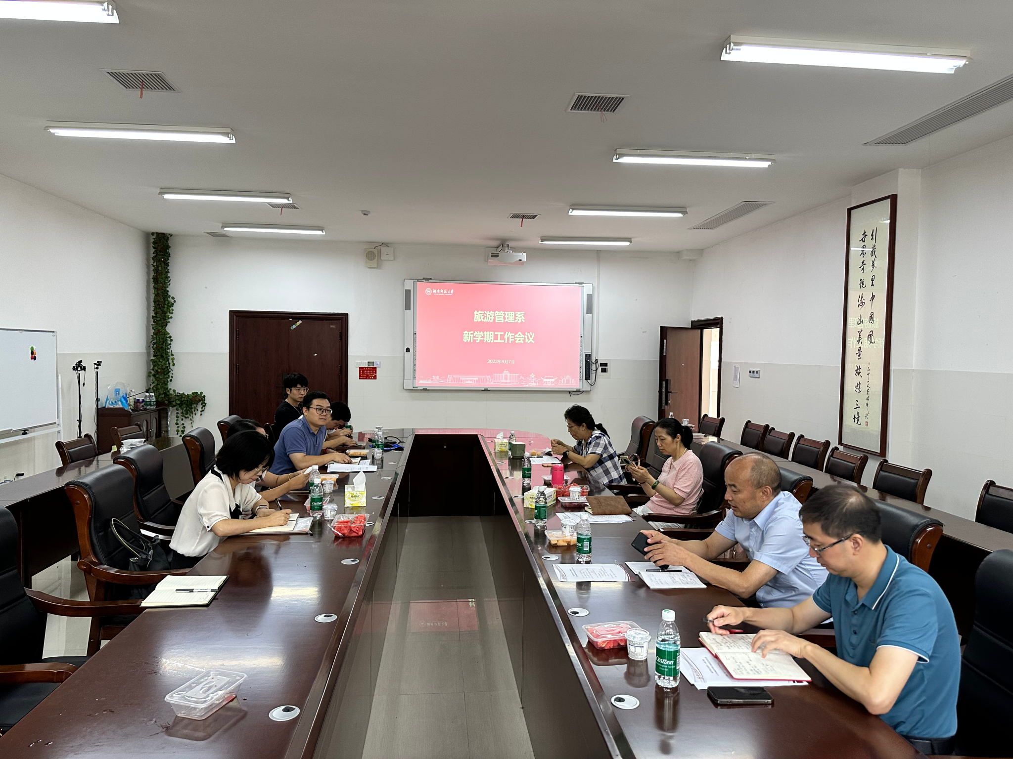 9月7日下午,yl8cc永利官网旅游管理系于中和楼233会议室召开新学期工作会议。学院副院长贺小荣、郑群明出席,会议由系主任罗文斌主持,旅游管理系全体在家教师参加会议。