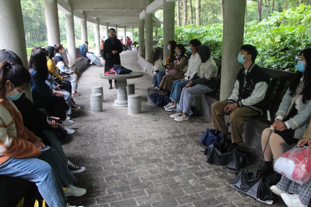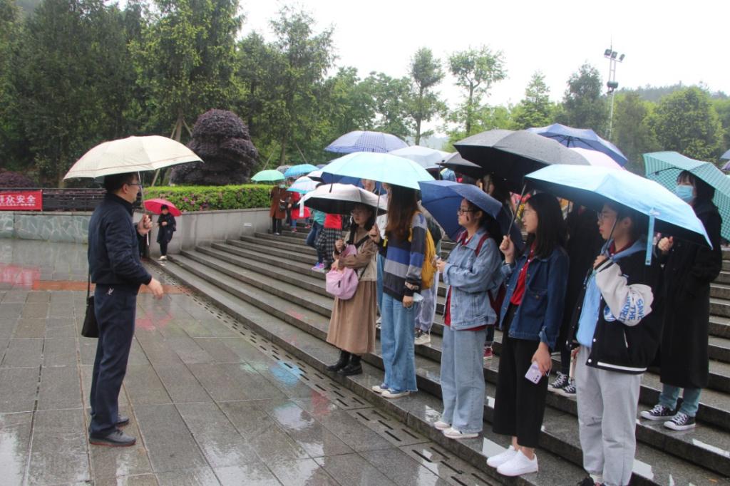 在韶山,师生一行依次参观了毛泽东铜像广场、毛泽东纪念馆、韶山全域旅游集散中心。在毛泽东铜像广场,郑群明教授冒雨给同学们上了一堂生动的红色旅游课,不仅系统介绍了“红色引领、创新驱动”的韶山旅游模式,还绘声绘色地讲述了韶山由毛泽东主席故居发展成韶山旅游区、到首批5A级旅游景区、再到首批国家全域旅游示范区的历程,使同学们对 “红色”湖湘文化的内涵有了更深的感悟。在毛泽东纪念馆,同学们跟随着一幅幅画卷、一封封手书,回到那激情燃烧的岁月,回顾了由湖湘文化孕育出的一代伟人毛泽东的一生。随后师生一行在韶山全域旅游游客集散中心一起观看了情景剧《梦回韶山》,变换的光影艺术带领同学们穿越历史长河,追溯一代伟人毛泽东主席的成长历程,在这一场科技与艺术相结合的多媒体盛宴中,同学们对毛泽东主席深沉的儿女情、父母情、故乡情以及博大的国家情怀、革命情怀有了更深的体会。