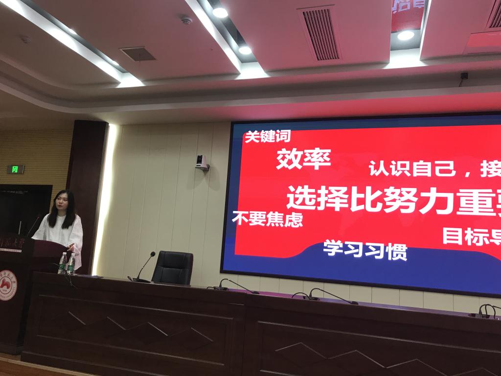 随后,由会展系17级学生李果、王娜、崔馨玲和曹婧祎分别从“学校和专业选择”“初试准备”“复试注意事项”以及“心态调整”等各个方面细致而又全面的分享了自己成功考研上岸的宝贵经验。
