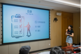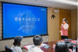 在邓芳琪的主持下,游客中心、商业中心、营销中心、人力资源部的实习生依次对5个月的实习生活进行了汇报与总结。营销中心实习生肖梦瑶表示在实习的过程中感受到了乐趣并学习到了很多新的技能,对自己的职业规划有一定的启发。其他同学表示同样有着许多不一样的收获和感受。