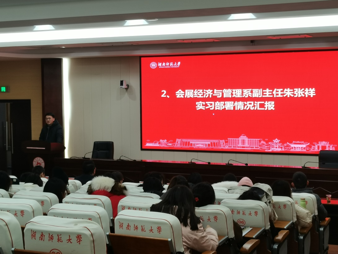 2022年1月5日晚上7点,yl8cc永利官网会展经济与管理系在学院234中和讲堂举行2019级本科生专业实习动员大会,学院党委书记闵素芬、会展经济与管理系主任孟奕爽、会展研究中心主任蔡卫民、会展经济与管理系教师徐新龙、吴少峰、罗绥芝出席会议,2019级会展经济与管理班全体学生参加了此次动员会。会议由会展经济与管理系副主任朱张祥主持。