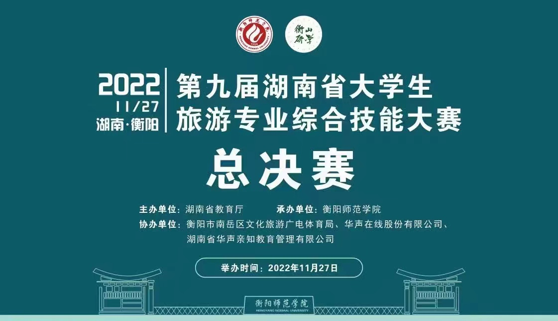 大赛由湖南省教育厅主办,衡阳师范学院承办,衡阳市南岳区文化旅游广电体育局、华声在线股份有限公司、湖南省华声亲知教育管理有限公司协办。此次综合技能大赛精彩纷呈,展现了全省旅游专业学生的良好专业素养与创新风采,激发和培养了大学生的创新思维、创业能力与家国情怀,为培养创新型、复合型、应用型人才起到了指导示范作用。