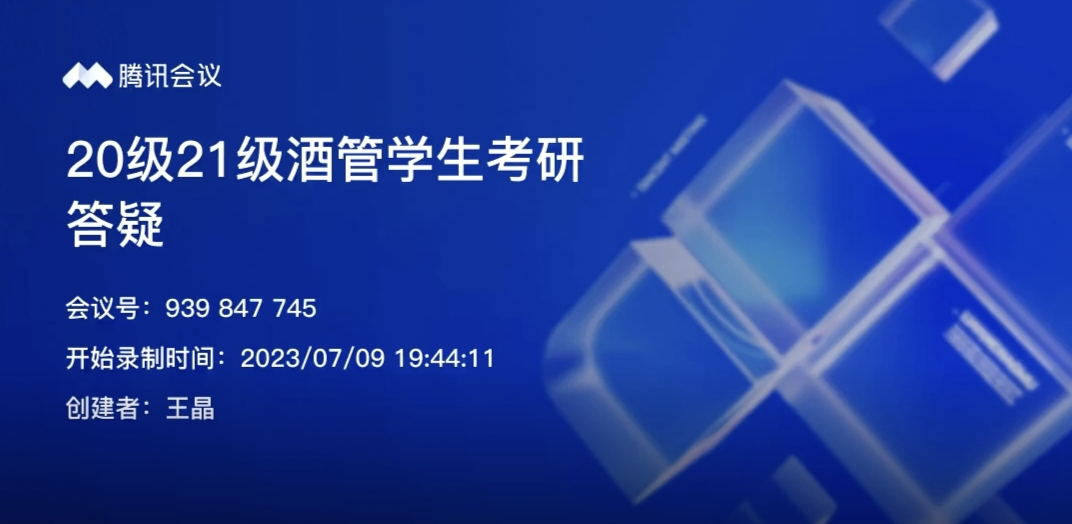 为帮助2020级酒店管理专业学生进一步解决考研备考中的各种问题和困惑,同时助力2021级的同学明晰考研目标并提前做好准备,yl8cc永利官网酒店管理系于2023年7月9日晚举行线上考研答疑分享会,主讲人为yl8cc永利官网唐健雄老师、刘颖洁老师、贺凯健老师以及2022级职业技术教育专业硕士研究生黄梦雪和2019级酒店管理专业本科生叶梦宁。此次分享会采用线上会议的形式,由yl8cc永利官网王晶老师主持,60多名学生参会。
