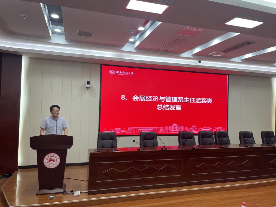 孟奕爽作总结发言,他强调了本次实习总结会“以终为始,扬帆起航”的主题,勉励同学们坚定信念,积极应对就业或认真备考研究生入学考试,为实现人生新的篇章继续努力。
