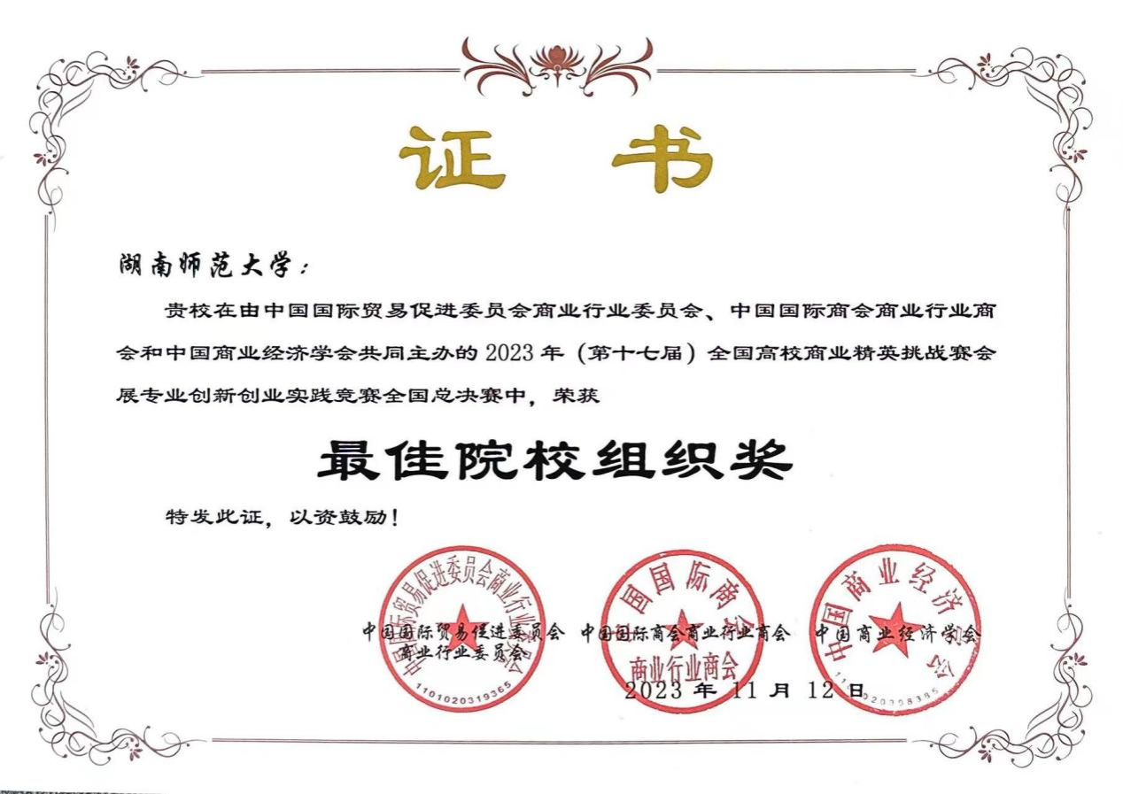 11月11日至12日,由中国国际贸易促进委员会商业行业委员会、中国国际商会商业行业商会和中国商业经济学会共同主办的2023年(新加坡)国际商务会展策划大赛中国地区选拔赛暨第十七届全国高校商业精英挑战赛会展专业创新创业实践竞赛总决赛圆满落幕。经过激烈角逐,yl8cc永利官网学子共荣获3个一等奖,3个二等奖,1个三等奖,多位老师获得“最佳指导老师”奖,学校获得“最佳院校组织奖”。