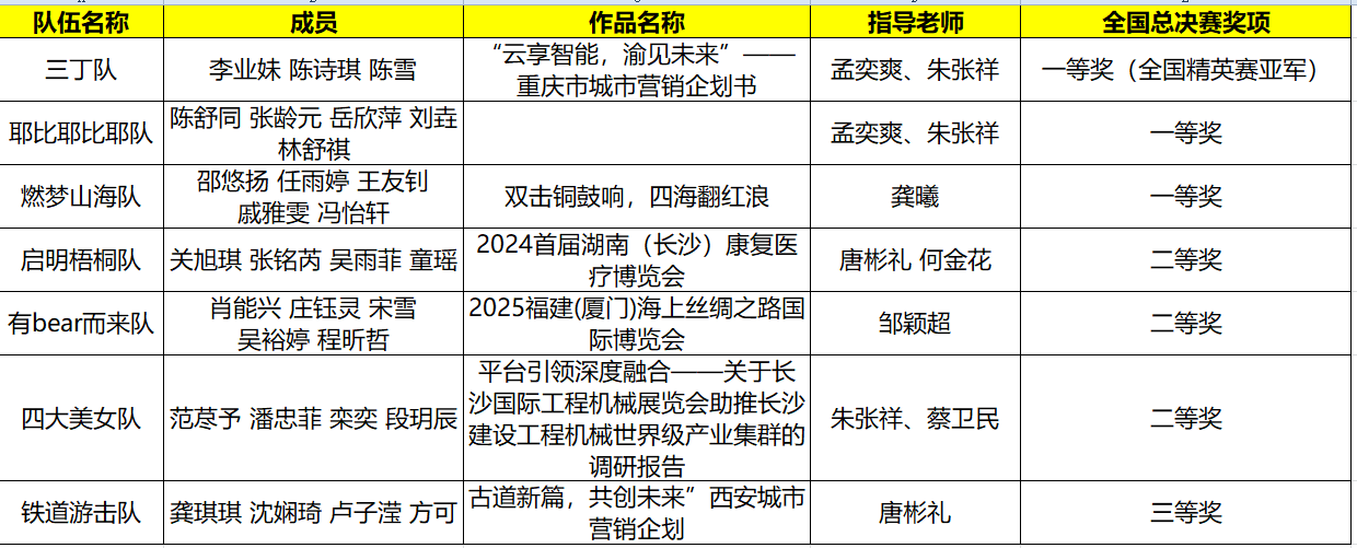其中,由yl8cc永利官网孟奕爽和朱张祥两位老师的共同指导,2021级会展经济与管理专业本科生李业妹、陈诗琪、陈雪共同完成的参赛项目《“云享智能,渝见未来”重庆市城市营销》经过初赛、复赛(省赛)、全国总决赛分组赛的层层选拔与淘汰,顺利晋级精英赛。并于11月26日举办的精英赛中荣获全国总决赛亚军,同时入围代表中国赴新加坡参加2024年国际商务会展策划大赛资格。