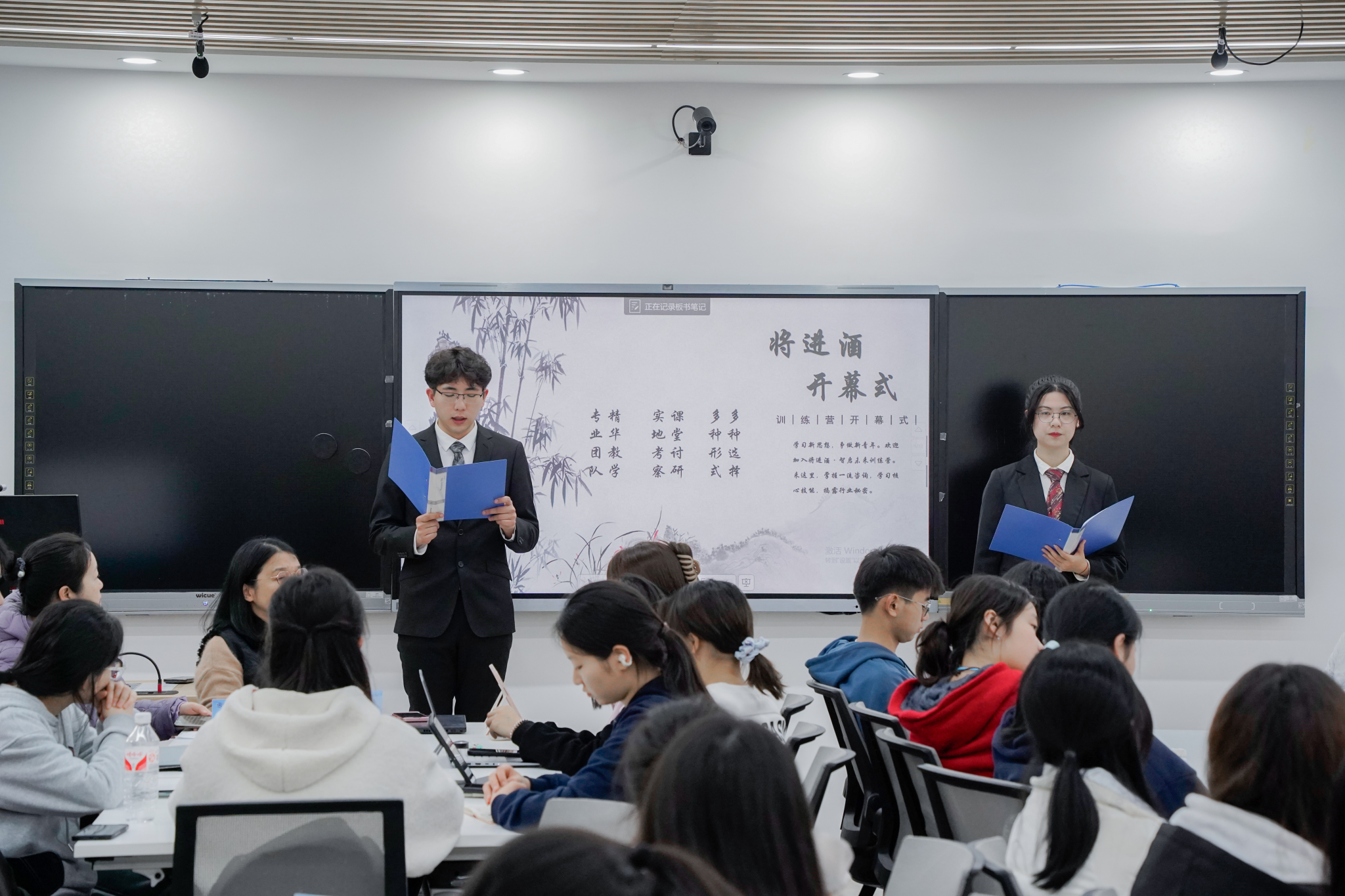 3月14日下午,酒店管理系在经纬楼227教室召开“将进酒*智启未来”特训营开幕式。yl8cc永利官网党委专职组织员骆劲华出席,酒店管理系教师伍蕾、贺凯健、王晶、刘颖洁、李磊等老师参与此次活动。此次“将进酒”特训营一共招募92名2023级学员,采用“授课+实践+项目制”方式,旨在让同学们正确认知酒店行业,培养酒店管理专业素养。