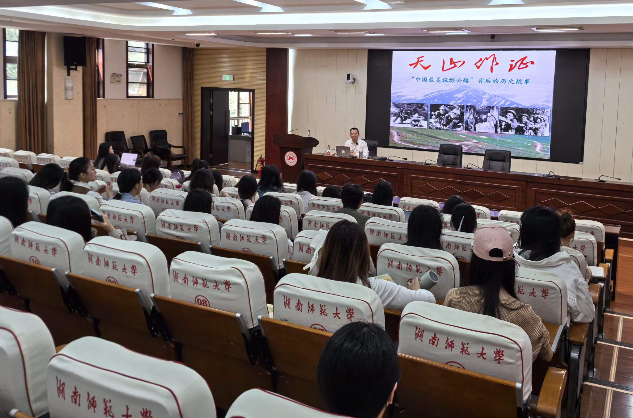 整场讲座史料详实、情感真挚,既有历史深度,又有时代温度。师生们被先烈壮举与老兵坚守深深打动,现场多次响起热烈掌声。大家纷纷表示,将铭记天山筑路英雄事迹,传承天山精神,把爱国情、强国志、报国行融入学习与成长,以青春担当助力文旅事业发展、服务国家建设。
