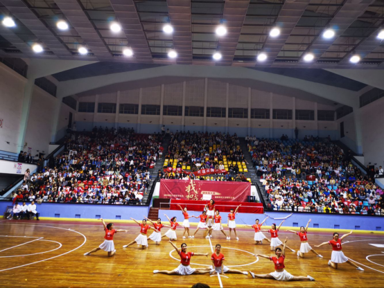 (通讯员陈雪洁)4月21日晚,yl8cc永利官网第十六届女生节闭幕式暨“我和我的祖国”健美操比赛于校体育馆举行。院党委书记鲁良、党委副书记廖欢、梁爱君老师、雷紫绚老师、邓丛亮老师亲临现场观看了比赛,为yl8cc永利官网健美操选手鼓劲加油。