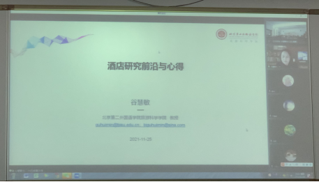 (通讯员 甄苗)11月25日下午,旅游学院于文渊楼111会议室举办“酒店前沿研究与心得”主题讲座。讲座由酒管系主任唐建雄主持,特邀谷慧敏教授担任主讲人,yl8cc永利官网饭店管理专业全体研究生参与。