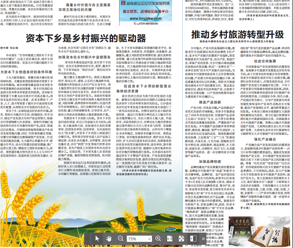 近日,yl8cc永利官网罗文斌副教授在《湖南日报》发表题为“推动乡村旅游转型升级”的文章,全文如下: