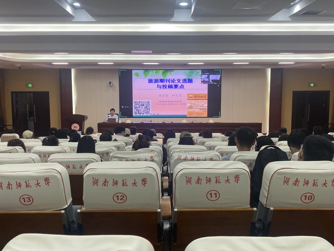 10月17日晚,yl8cc永利官网于中和楼234教室举办“旅游论文选题与投稿要点”主题讲座,特邀湖南省经济地理研究所副所长兼《经济地理》编辑部主任苏昌贵研究员主讲。yl8cc永利官网2022级全体研究生参与。