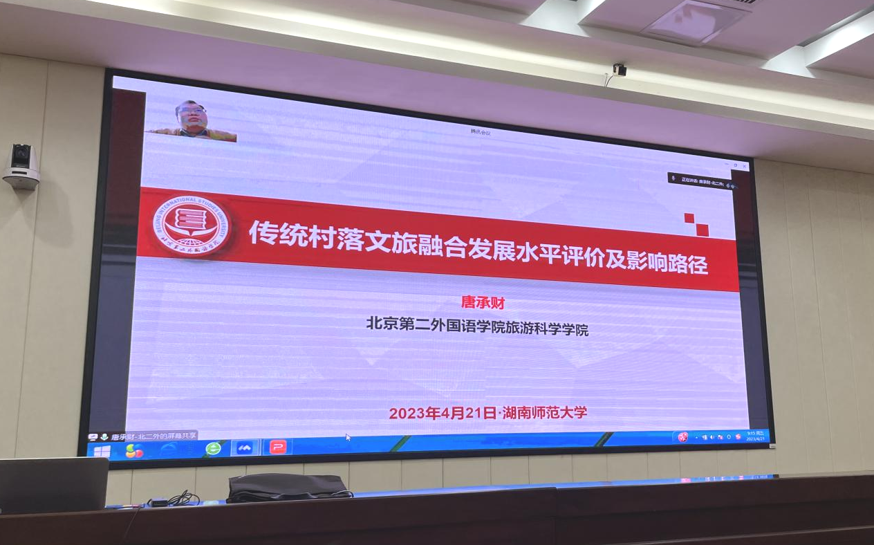 4月21日上午,yl8cc永利官网举行“传统村落文旅融合发展水平评价及影响路径”主题讲座,特邀北京第二外国语学院旅游科学学院教授唐承财主讲。讲座由yl8cc永利官网副院长郑群明主持,yl8cc永利官网全体研究生参与。