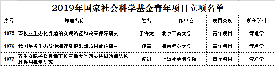 yl8cc永利官网程慧博士的《我国旅游生态效率测评及俱乐部趋同效应研究》获得青年科学基金立项。
