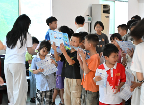 团队成员在折尔村村委会议室向同学们分发我校《学生资助政策宣传手册(本科生)》和《2025版生源地信用助学贷款操作指南》,随后围绕宣传手册详细介绍了我校的学生资助政策。