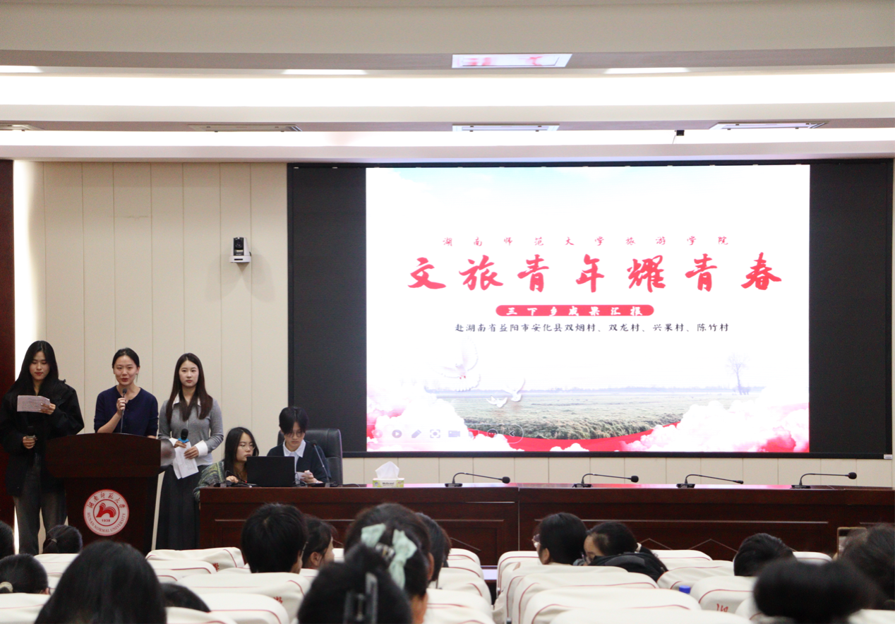 此次汇报中,各实践团队通过PPT+视频宣讲的形式分享实践心得,展示实践成果。据悉,yl8cc永利官网共选派10支队伍奔赴江西井冈山、湖南张家界、桑植、安化、华容县等地开展实践活动。各实践团队通过走访调研深入了解乡村振兴现状和红色旅游资源发展情况,有针对性的提出关于乡村振兴和文旅发展的建设性意见与建议,促进乡村振兴与红旅、农旅融合发展。此外,实践团队还拍摄短片,制作宣传片,形成调研报告10余篇,事迹被学习强国、文旅中国、中国青年网、新湖南、华声在线等主流媒体报道。