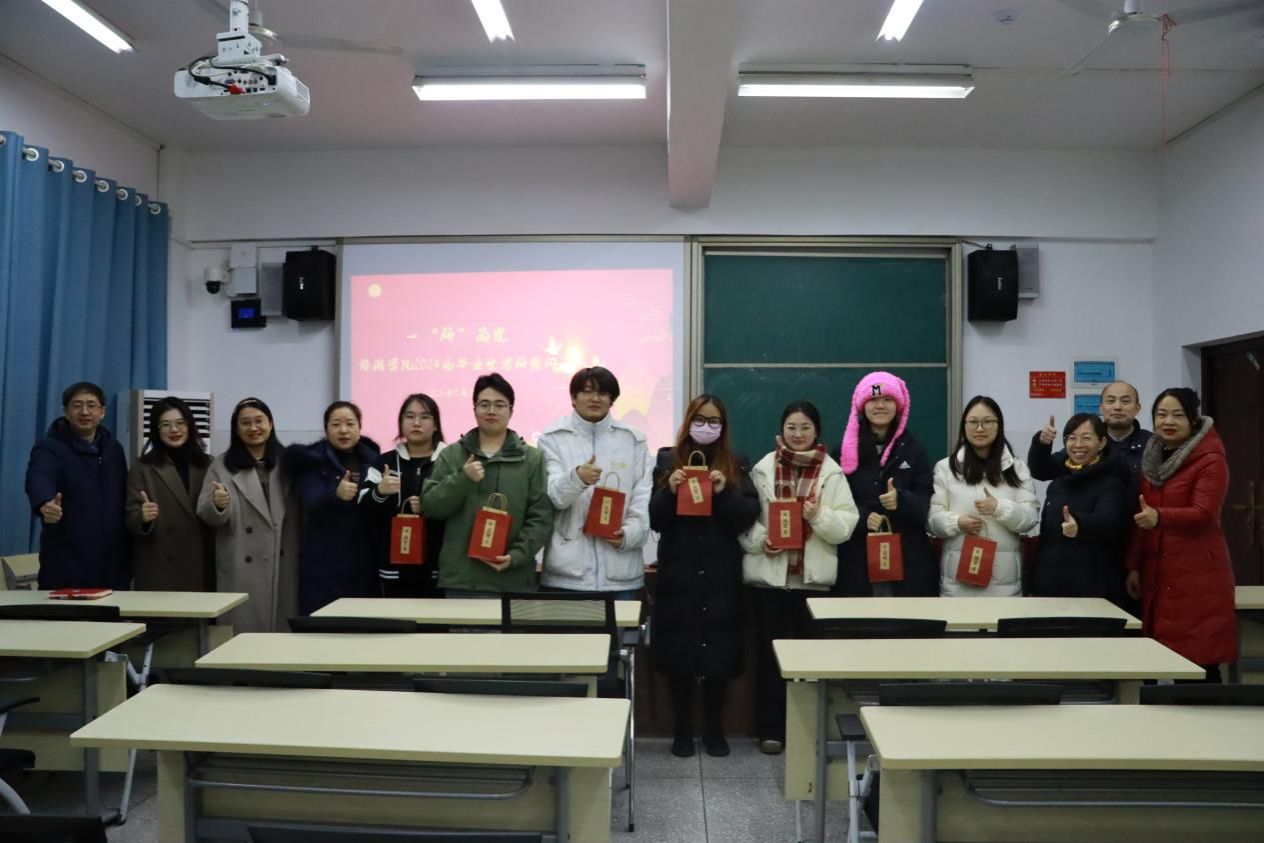 闵素芬代表学院与考研学子进行了亲切交流,她提醒在这个关键时期,一方面要坚定考研决心,持之以恒跑完最后“一公里”,另一方面要注意劳逸结合,保持良好学习状态,合理安排作息时间,并表示学院将尽全力提供帮助和便利,助力学子们追梦成功。邱粤湘向同学们强调了考试当天的注意事项,叮嘱同学们做好个人防护及防寒保暖措施。最后,在场老师们为考研学子送上了学院精心准备的“考研加油包”,预祝他们一战成“硕”,金榜题名。