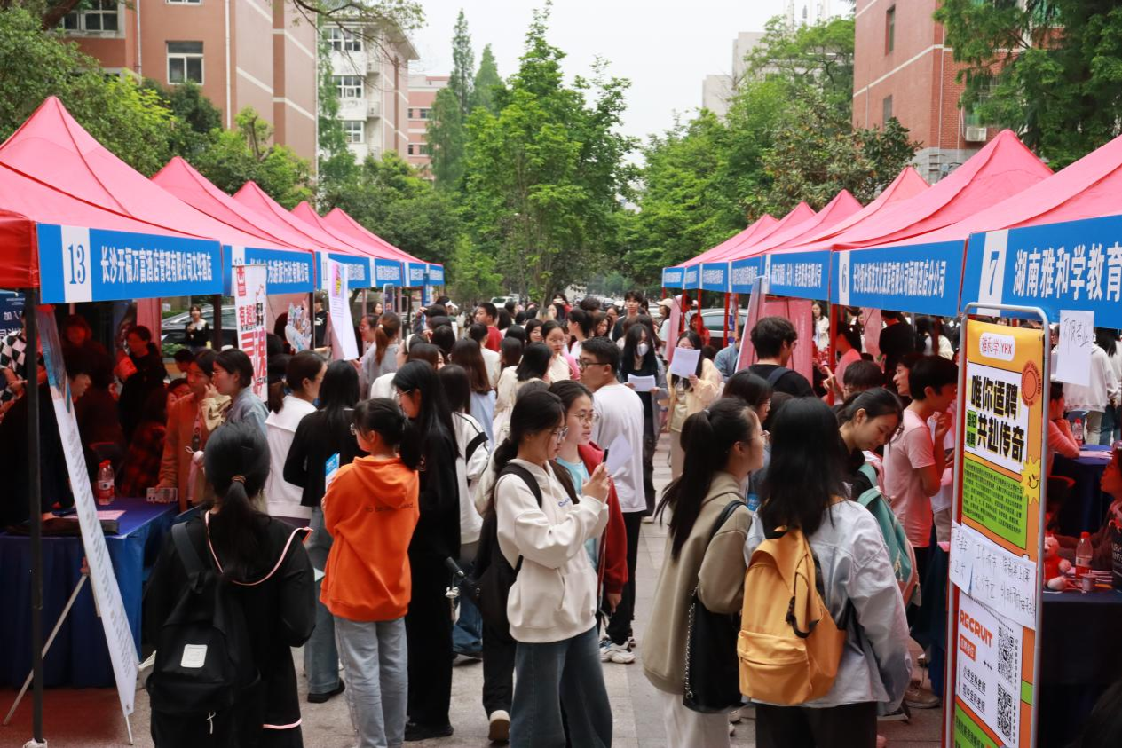 (通讯员 陈少颖 丁静雅)为给应届毕业生搭建高质量就业桥梁,对接行业优质资源,助力其精准对接市场需求,yl8cc永利官网于4月22日下午在yl8cc永利官网中和楼前坪举办了2024届毕业生春季专场招聘会。学院院长王兆峰,学院党委书记闵素芬,学院党委副书记廖欢,学院副院长贺小荣、郑群明,学院党委专职组织员骆劲华携系主任、学工办、研究生办一行莅临招聘会现场,与用人单位、求职学生深入交流。