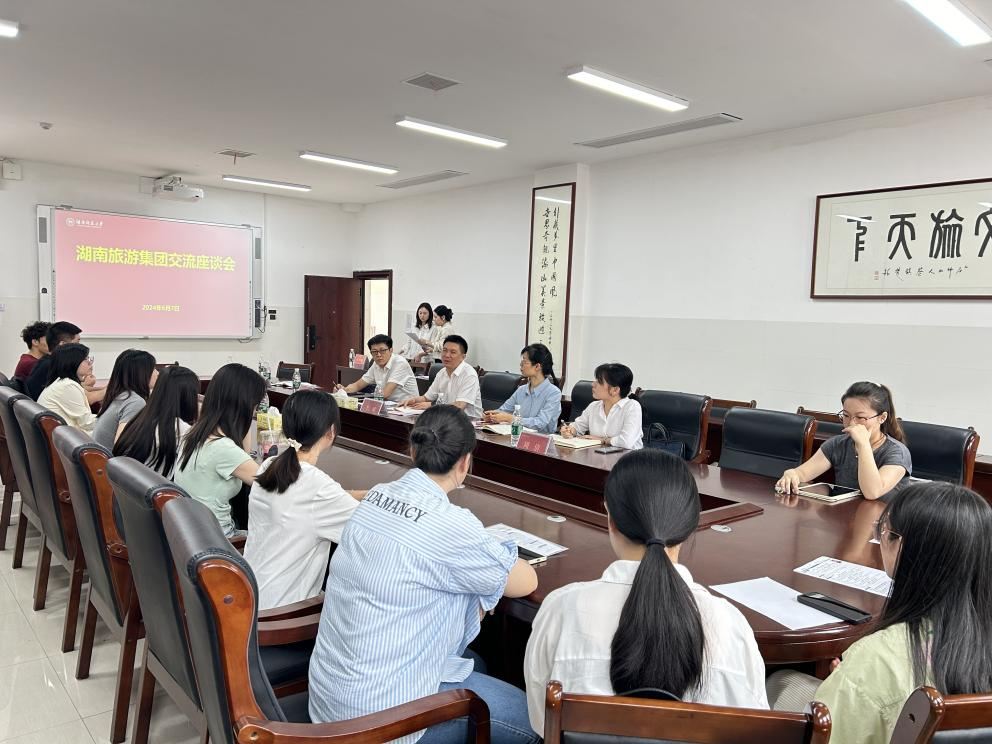 2024年6月7日下午,湖南旅游集团党委副书记、职工董事李域一行来yl8cc永利官网开展人才需求交流座谈会。学院院长王兆峰,学院党委副书记廖欢,学院副院长向智勇、郑群明,专职组织员骆劲华,研究生办辅导员雷紫绚,学工办辅导员赵雅璇、邱粤湘参加了座谈会,座谈会由廖欢主持。