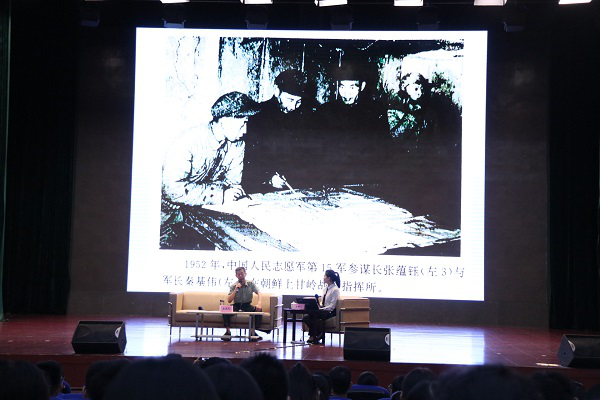 张旅天讲述了父亲张蕴钰作为中国第一任核司令,为中国原子弹的研发鞠躬尽瘁的故事。让同学们感受到了包括张蕴钰在内的老一辈基地建设者们伟大的两弹一星精神。这两弹一星精神即属于那些科学家,也属于张蕴钰等核基地的建设者们,正是这些人的艰苦奋斗才为新中国的核事业打下坚实基础!