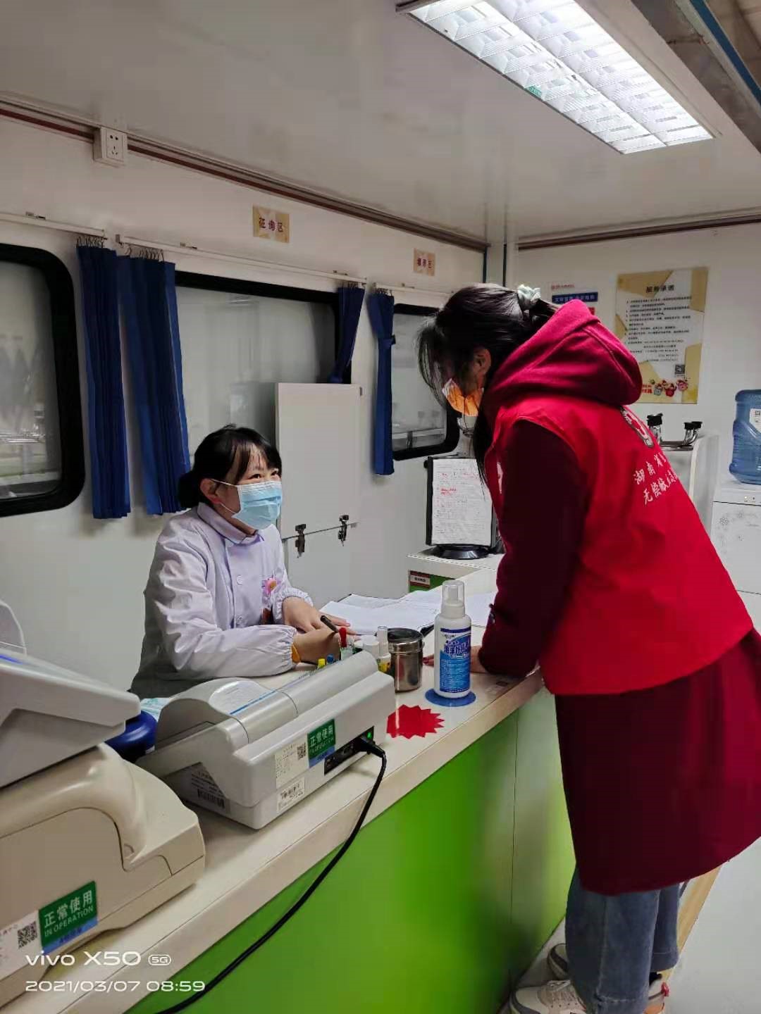 志愿者与献血工作人员