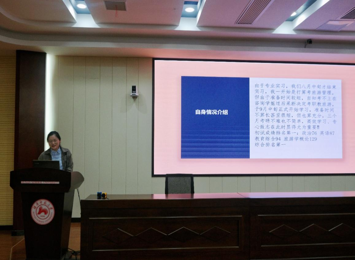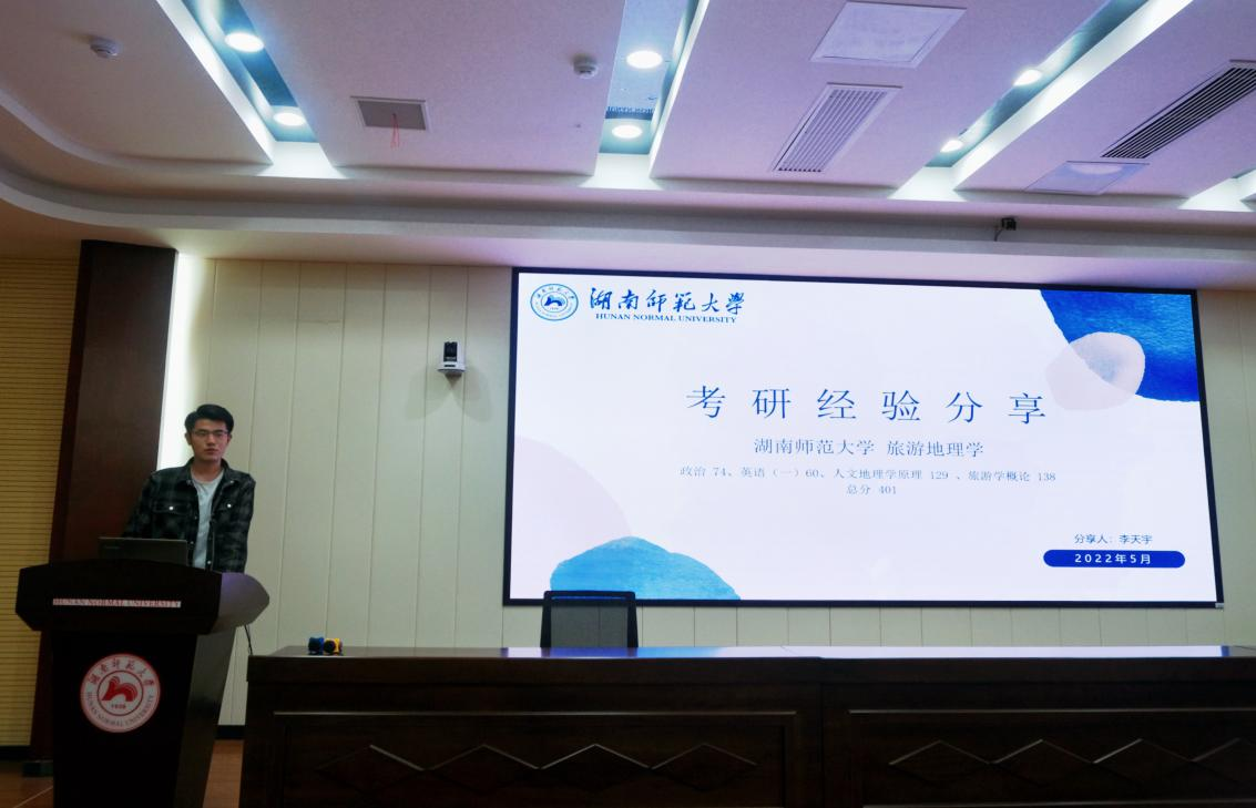 (通讯员 周娜 周依林)5月12日,yl8cc永利官网在中和楼234开展主题为“砥砺青春,研梦起航”的考研经验分享交流会。会议由yl8cc永利官网20级辅导员邱粤湘主持,主讲人有yl8cc永利官网2021级旅游管理学硕士研究生邹佳、2021级旅游地理学硕士研究生李天宇、2021级学科教学硕士研究生李昕、2018级旅游管理专业优秀毕业生刘青云、2018级旅游管理专业优秀毕业生段婷。