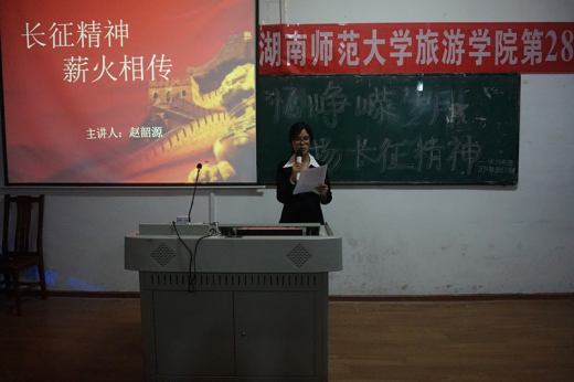 四位主讲人从重温长征胜利历史、长征精神、长征精神对于大学生的意义、如何结合专业特色来传承长征精神四个方面展开阐述。对于长征精神,彭资涵进行了具体的解释。她说,长征精神体现在红军长征途中方方面面,它是执着追求、无私奉献、百折不挠、英勇顽强,所有长征途中展现出的优秀品质都是长征精神的内涵。唐凤莲则联系自身专业特色,将长征精神与红色旅游巧妙结合,赋予其新的时代魅力,她表示,红色旅游融趣味性与教育性为一体,将长征精神与红色旅游相结合,有利于充分发挥长征精神对世人的激励作用。