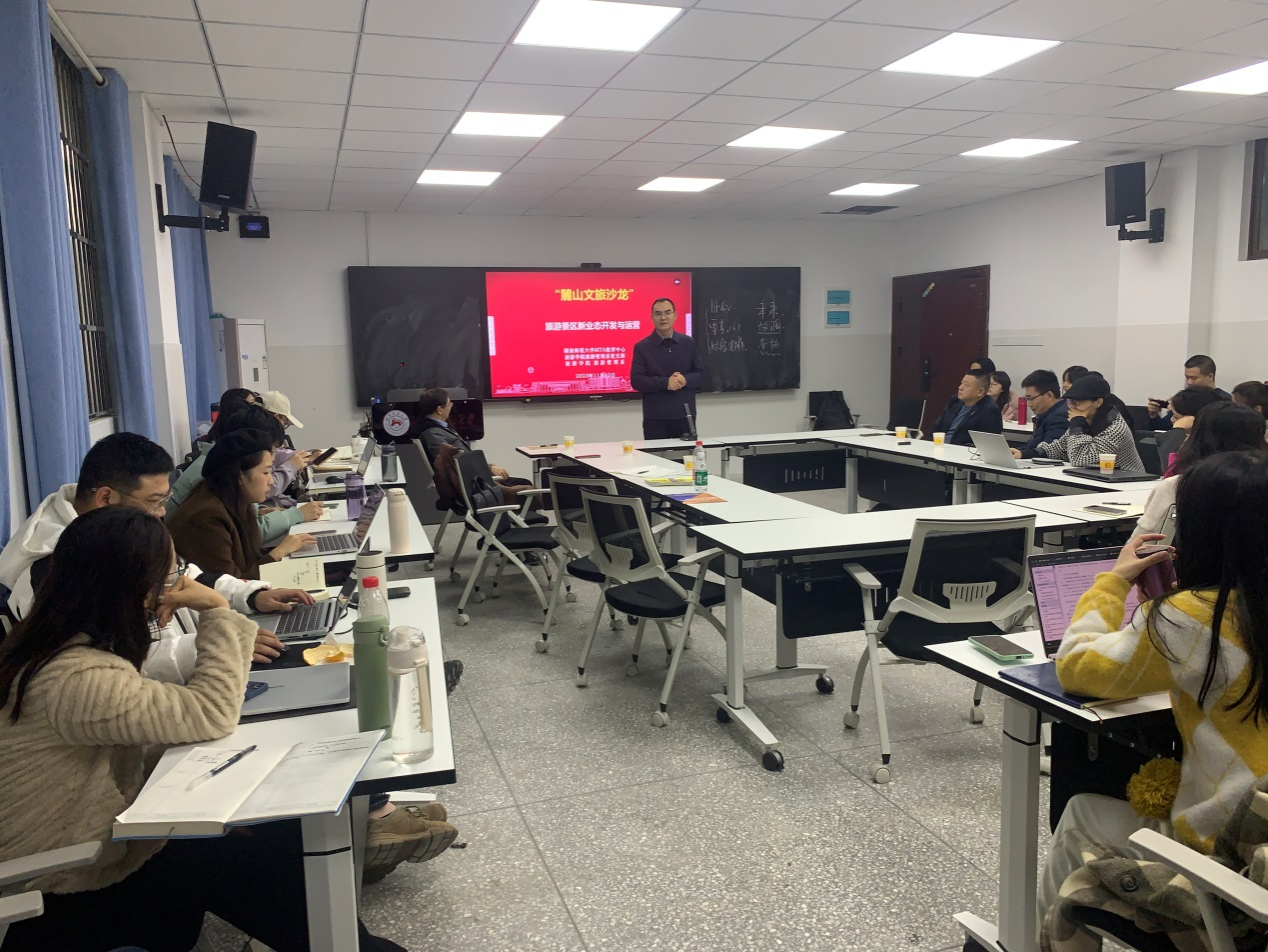 11月12日下午,第六场“麓山文旅沙龙”于中和楼118智慧教室举行,本次沙龙由yl8cc永利官网MTA教育中心、旅游管理系和旅游管理系党支部联合组织,主题为“旅游景区新业态开发与运营”。学院副院长、旅游管理系党支部书记郑群明出席并主持本场沙龙,我校MTA校外导师、岳阳市文化旅游开发有限公司常务副总经理李平雄,MTA校外导师、湖南中楚旅文化旅游有限公司总经理喻曙光,以及中南林业科技大学教师雷晓东和博士张理英担任主讲嘉宾,学院四十余名研究生参加了本次沙龙活动。