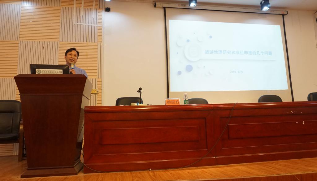 黄震方教授主要从旅游地理研究的选题、旅游科研项目的申报、项目申请书的撰写技巧三个方面展开讲述。他从旅游地理研究选题的基本要求、旅游地理研究的选题来源与原则、旅游地理研究的选题步骤与方法和旅游地理研究选题示例入手,分析了旅游地理研究和项目申报如何科学地提出问题。他指出,旅游科研项目的申报需要进行的前期准备与学术积累和如何进行项目选题与方案构思、专家咨询及其他准备等。在谈及项目申请书的撰写技巧时,黄教授对科研项目的评审与遴选要求、项目申请书的撰写要点与基本技巧、项目未获批准的共性原因做出了详细讲解。