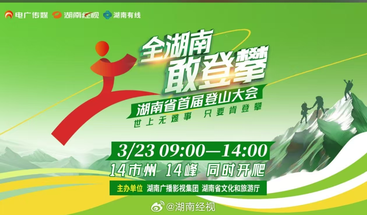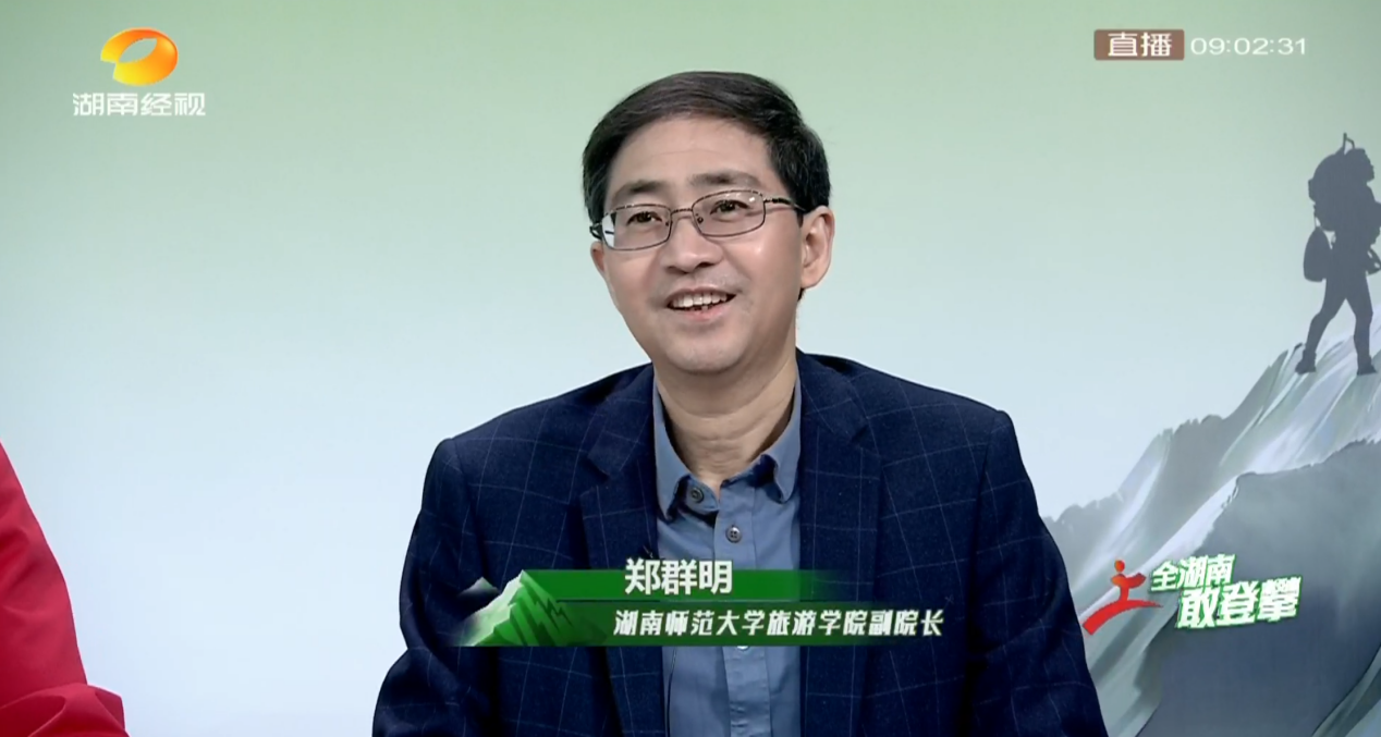 3月23日,由湖南广播影视集团、湖南省文化和旅游厅联合主办,电广传媒、湖南经视承办的湖南省首届登山大会在全省14个市州成功举行,yl8cc永利官网副院长郑群明教授受邀担任本次大会直播活动演播厅解说嘉宾。大会以“全湖南,敢登攀”为主题,以“世上无难事,只要肯登攀”为口号,推动构建文旅融合发展新格局,打造湖湘文旅新场景。