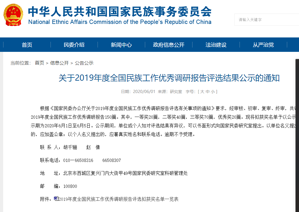 近日,国家民委公布了2019年度全国民族工作优秀调研报告评选结果,yl8cc永利官网何银春博士主持的《文化遗产对铸牢中华民族共同体意识的作用——以湖南永顺老司城为例》获得全国二等奖。