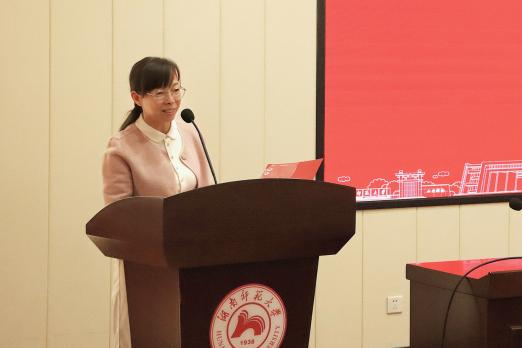 闵素芬宣读获奖名单,与会领导和嘉宾为获奖学生颁奖。