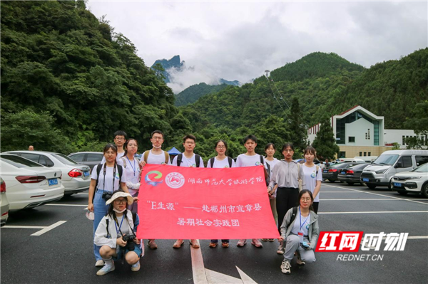 “E生源”团队在莽山景区前的合照。洪祯蔚摄