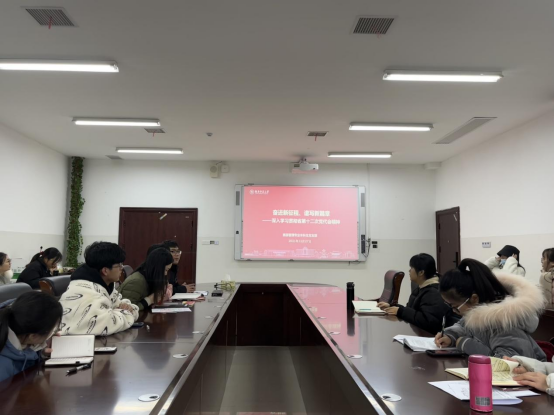 根据上午进行的集中培训,胡潜带领支部全体党员进行了再次的深入学习。与会同志就此次大会的精神进行了分享与交流。雷兰兰同志表示:“意向考公的同学不应该空喊口号,深入基层、为基层服务是作为一名共产党员的光荣。”