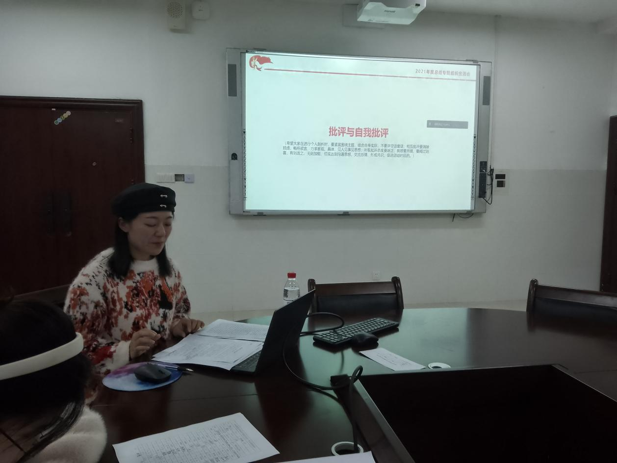 组织生活会上蒋丹同志代表支委对2021年度支部工作进行汇报,从支委主要工作内容、主题党日活动、创新活动形式、工作不足反思、解决措施建议等方面总结了支委在2021年的工作情况及未来展望。接着,在批评与自我批评环节,与会同志逐一进行对照检查,就自身不足及整改措施进行了充分的批评与自我批评。