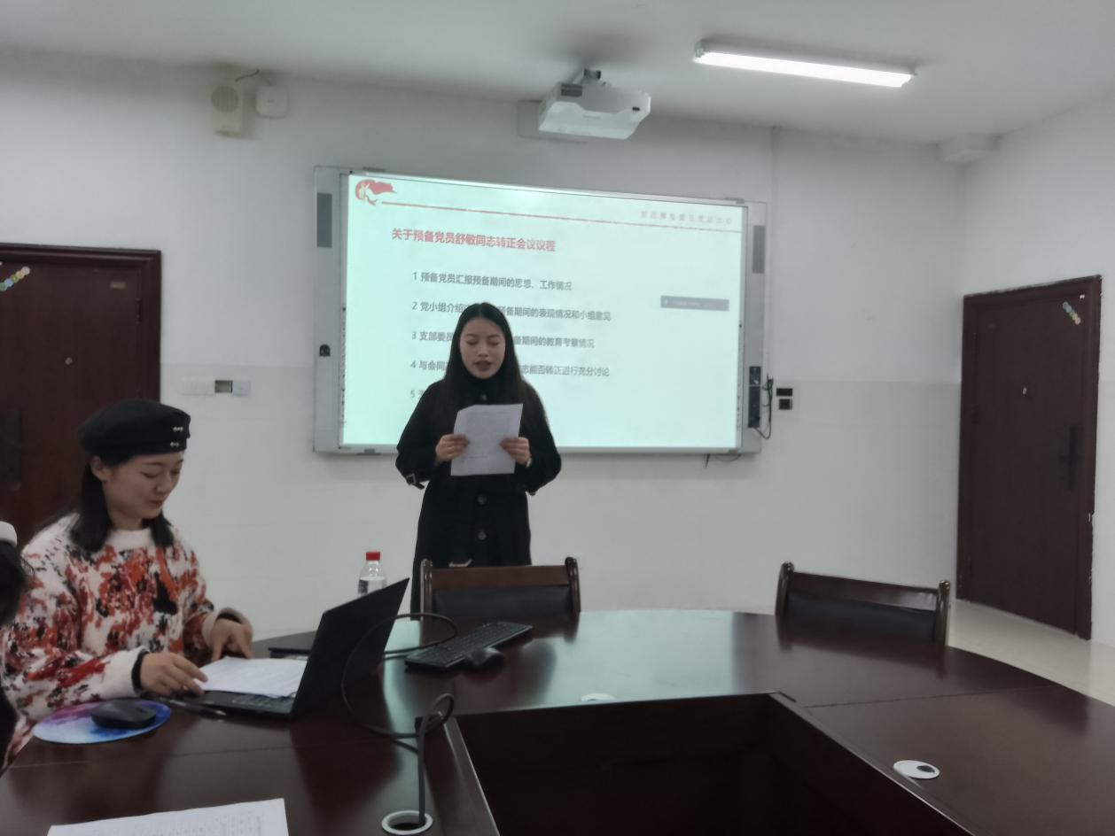 预备党员转正大会经由预备党员汇报、党小组介绍其预备期间的表现情况和小组意见、支部委员会介绍其预备期间的考察情况、与会同志充分讨论并无记名投票表决依次通过了舒敏、赵雅欣、邓玲珠的转正申请。