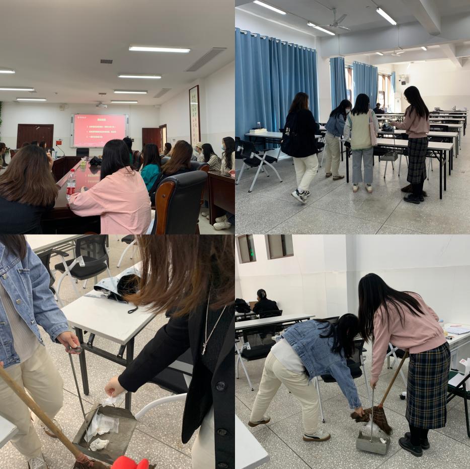 活动中支部老党员分组带领新生党员参观校园、学院,耐心地为其指引介绍,在欢声笑语中相互熟悉,让新生党员感受到支部同志们的关心与温暖。在随后的志愿打扫中,中和楼的走廊、教室等地也都活跃着党员同志们活力可亲的身影,从身边的小事践行着为人民服务的初心。